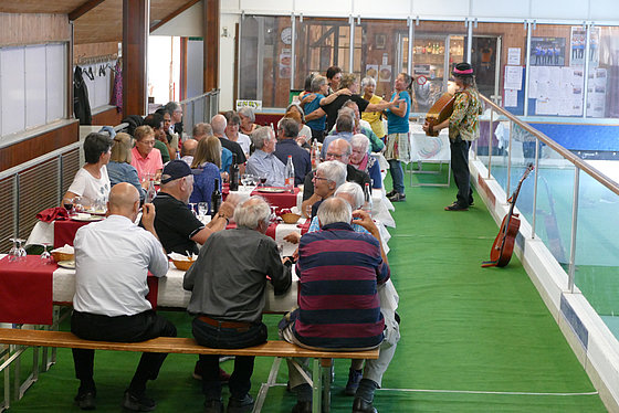 Si riprende il viaggio direzione Lucerna, più precisamente al bocciodromo della Pro Ticino. Lì ci attende Barbara Klett, vicepresidente, e in cucina Antonio con i suoi collaboratori, i quali avevano già preparato un bel aperitivo al quale noi, affamati, abbiamo dato l’assalto! Dopo l’aperitivo e una piccola pausa, i Tacalà cominciavano ad animare la giornata. Dopo il pranzo, ancora musica, arriva anche il dolce, un buonissimo Tiramisù al quale io abbino un caffè corretto, molto ben corretto…e la giornata si avvia verso la fine…