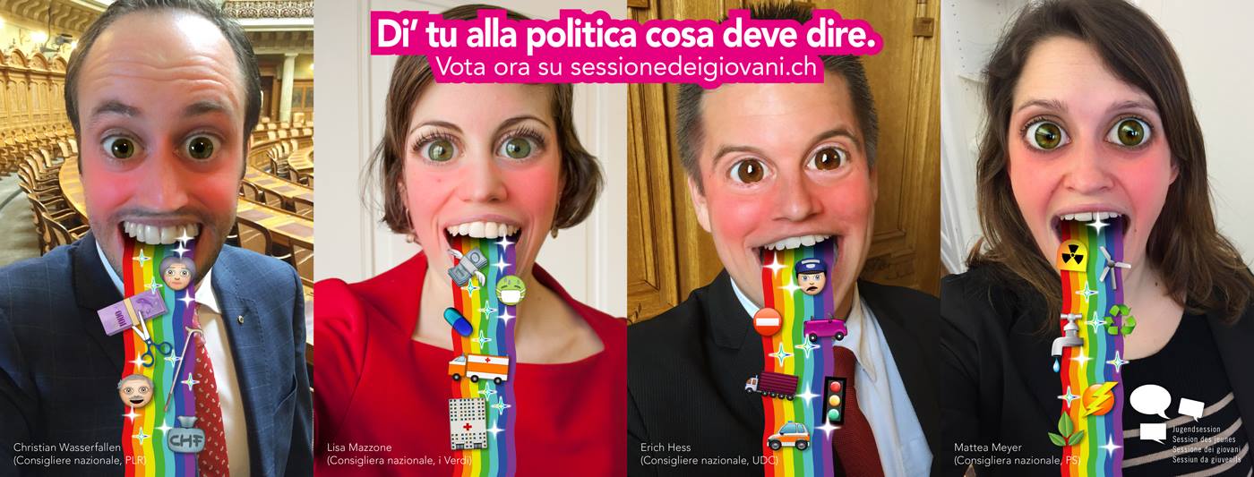 Oltre 200 giovani provenienti da tutta la Svizzera sfruttano annualmente l’occasione e diventano parte della più grande piattaforma svizzera per le richieste politiche dei giovani. Vuoi fare sentire la tua voce e sei stufo di scuotere il capo quando guardi il telegiornale? E in generale - che cosa fanno quelli lì tutto il giorno a Palazzo federale? Partecipa alla Sessione federale dei giovani e scoprilo tu stesso.