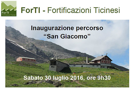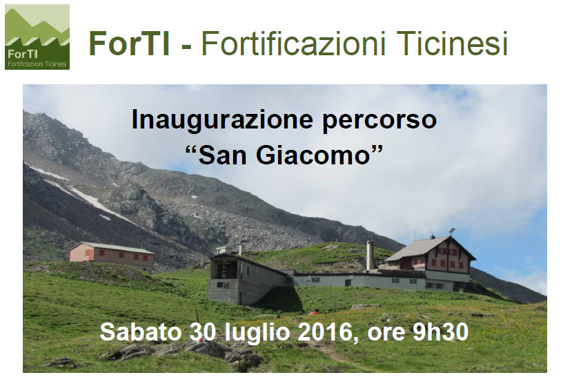 L’Organizzazione turistica regionale Bellinzonese e Alto Ticino - Ufficio turistico di Leventina, e l’Ente Regionale per lo Sviluppo del Bellinzonese e Valli, capofila del progetto, invitano all’inaugurazione del percorso “San Giacomo” del progetto ForTI www.forti.ch.