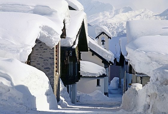 Wer mit dem Auto von Cioss Prato ein paar Minuten weiter bis nach All’ Acqua fährt, dem eröffnet sich eine wenig berührte, alpine Winterlandschaft, ideal für Schneeschuh- und Skitouren. In der kalten Jahreszeit endet die gepfadete Strasse in All’ Acqua – im Sommer führt sie hinauf zum Nufenenpass und weiter ins Obergoms im Kanton Wallis. Das Bedrettotal ist bekannt für seine rekordhohen Schneemengen – momentan liegen allerdings nur 35 Zentimeter. Im Februar 2009 mass die Wetterstation Bedretto Cassinello jedoch 378 Zentimeter der weissen Pracht. Das Tal ist im Winter immer wieder wegen Lawinengefahr gesperrt. Im Lawinenwinter 1951 musste gar das ganze Tal evakuiert werden. Seither hat sich die Sicherheit dank Verbauungen verbessert. Schneedaten Dati nivometrici