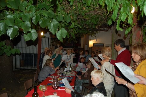 Cerramos el año 2015 con una placentera reunión de socios y amigos en el jardín del fondo de nuestra Sede. Primero degustamos los variados bocadillos preparados por los miembros de la Comisión Directiva, enriquecidos por un exquisito "pâté maison" llevado por el socio Guy Goudet, todo esto acompañado por un buen vino. Luego compartimos el pan dulce, siempre presente en nuestras despedidas de año.