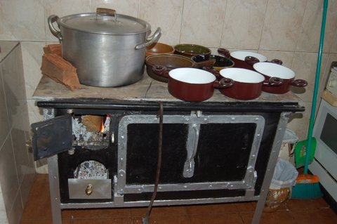 Como resultado de la limpieza y arreglos realizados en las chimeneas del local de la Società y de la reparación de la histórica cocina económica, que vemos en la foto esperando el queso para fundir en el vino, pudimos disfrutar de una reunión “sin humo”.
