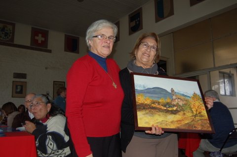 Y para paliar los numerosos gastos que implican todas las mejoras que se están llevando a cabo en la Sede, contamos con el talento artístico de Suor Olga Pianezza quien tuvo la generosidad de obsequiar un cuadro de su autoría para ser sorteado entre los participantes. Fue nuestra amiga Elbita Orrico quien tuvo la suerte de ser beneficiada con el premio.