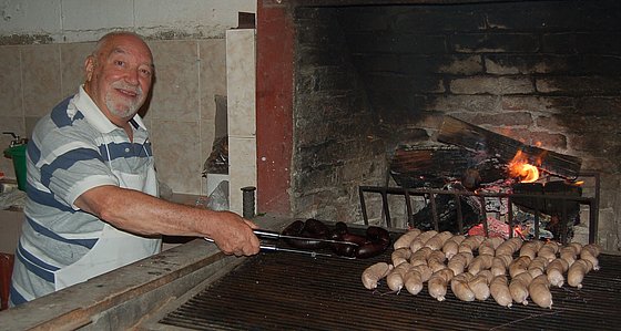El Dr. Holenweger, y su colaborador el Ing. Morosoli, soportaron valientemente la temperatura de las brasas encendidas que le iban dando color a los embutidos y a las hamburguesas que fueron a la mesa.