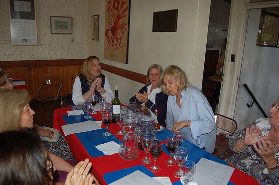 Liliana Clericett,i socia cumpleañera del mes de abril presente en el almuerzo, pudo apagar la velita de la torta simbólica que la homenajeó y que compartió generosamente entre los festejantes.