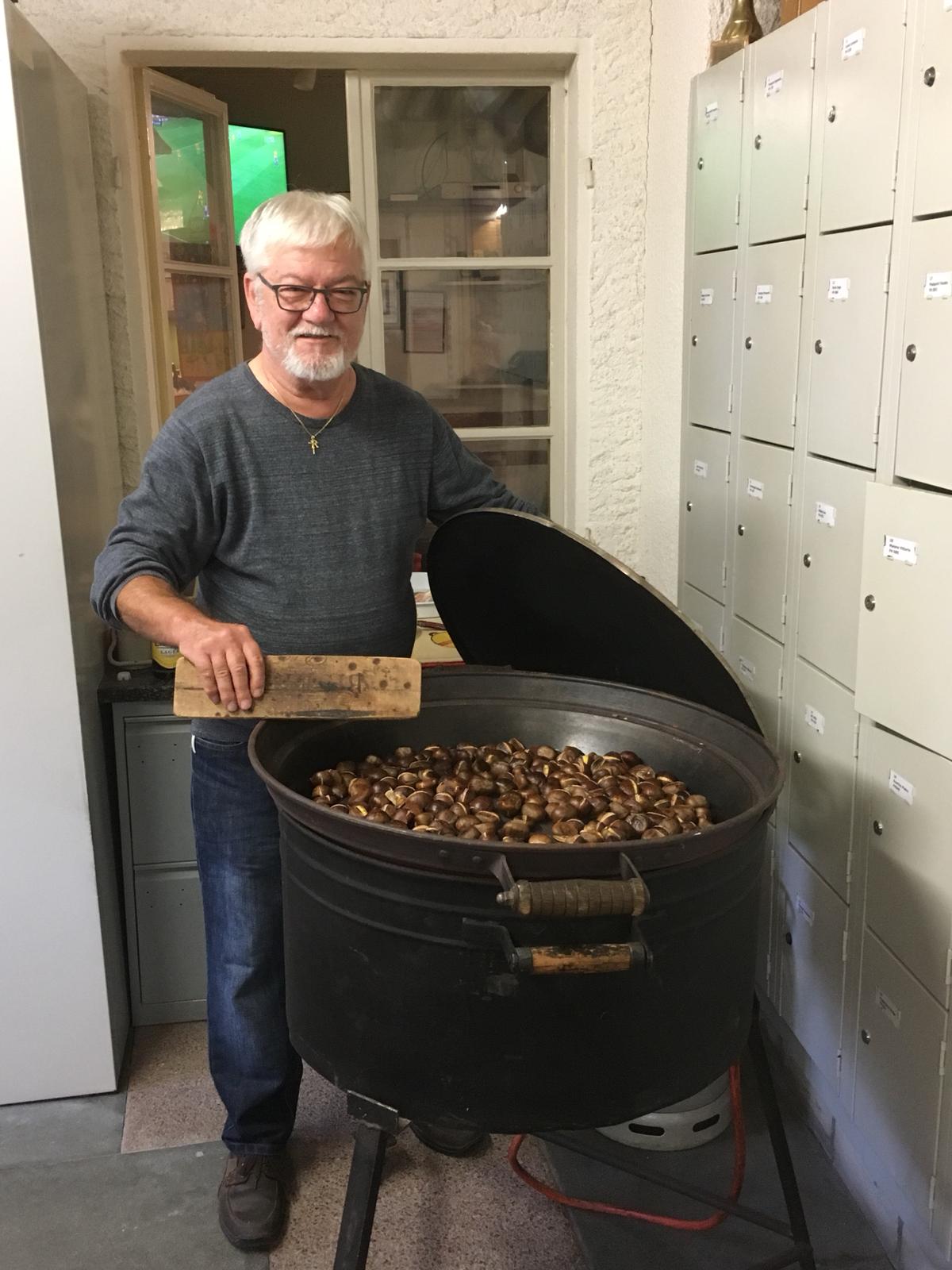 Durante la seconda esibizione dei nostri coralini Hans Güntert ha terminato la preparazione delle caldarroste che sono poi state distribuite a tutti i presenti.