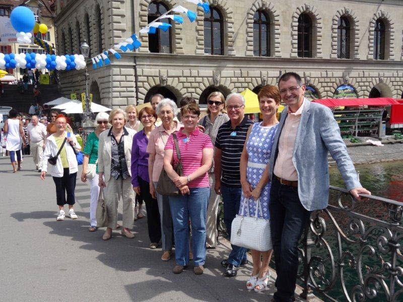Quest’anno il gruppo culturale ha visitato il municipio della Città di Lucerna. Sotto la guida della simpatica signora Mathis, un gruppo di curiosi dell’interessante storia della Città ha visitato la Torre e le storiche stanze del Municipio. Risalente al 1606, costruito da Anton Isenmann in stile rinascimentale italiano, il municipio è composto di diversi livelli, dove si svolge la vita cittadina. Sotto le arcate rivolte al Reuss si trovano ristoranti e birreria, di sabato anche il mercato, al piano della piazza la sala Kornschütte, prima un magazzino aperto al pubblico, oggi diventata una sala concerto e spettacolo; al primo piano la sala delle cerimonie, la sala del consiglio cittadino, quella di lettura e l’archivio. Dopo essere saliti sulla Torre e visionato la città dall’alto scoprendo una serie di terrazze nascoste non visibili dalla strada, abbiamo visitato le sale storiche. La guida signora Mathis ci ha condotto attraverso gli avvenimenti storici raccontando aneddoti e leggende che colorano la storia della Città. Sulla piazza del Municipio e sotto le arcate pullulava la folla per il mercato settimanale e i preparativi della festa estiva di Lucerna. Ci siamo poi allontanati dalla calca della Città per andare a goderci un aperitivo a base di specialità ticinesi nel Vögeligarten. Bella mattinata! Grazie a Maria Luisa per l’organizzazione.