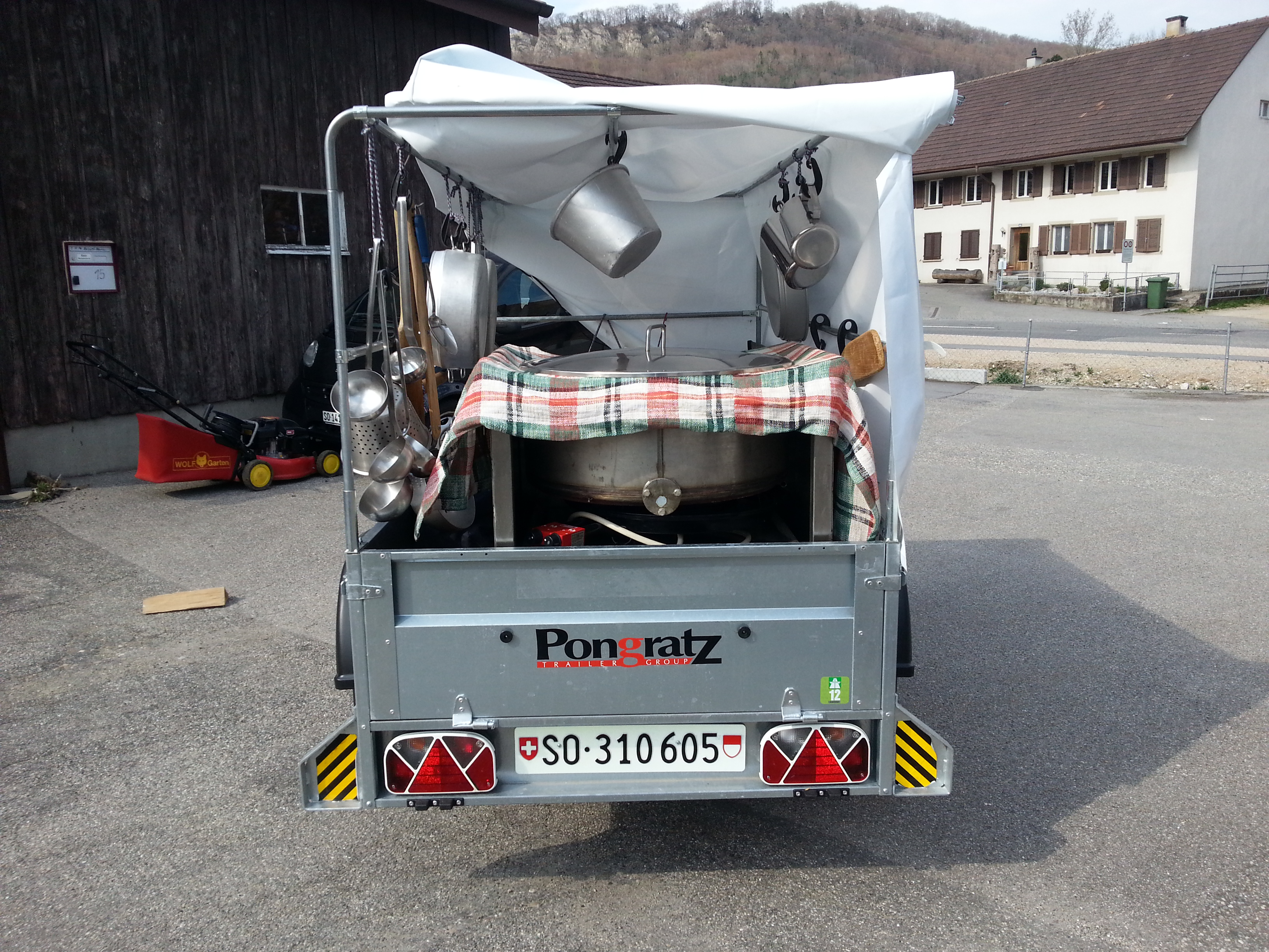 Siamo attrezzati in modo autonomo per poter cucinare da 50 a mille porzioni in città, nei boschi, a casa vostra...anche sulla luna, se necessario (con un piccolo costo supplementare, naturalmente).