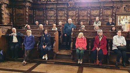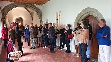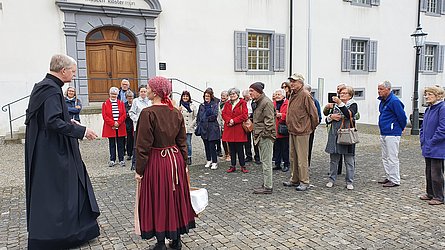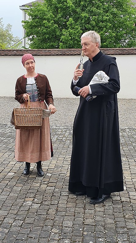 Sabato 7 maggio una trentina di soci e amici della Pro Ticino hanno dato seguito al nostro invito per questa interessante visita e si sono ritrovati di buon mattino davanti all’entrata principale del monastero. Lì sono stati raggiunti da una contadina dei tempi che furono (Josefine) e da un frate benedettino (padre Otmar). La prima piuttosto critica nei riguardi del mondo ecclesiastico, l’altro invece timorato di Dio. Le due guide hanno recitato la loro parte in modo talmente autentico e avvincente che il giro della visita è stato per tutti un vero piacere e avrebbe potuto senz’altro durare più a lungo.