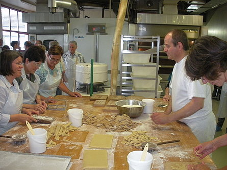 Noi invece, più modestamente, ci siamo fermati lì in una grande pasticceria dove, dopo due ore di divertente lavoro, abbiamo imparato a fare i famosi "Biber".