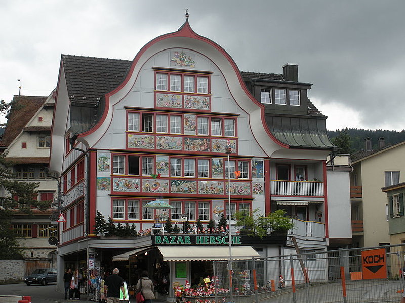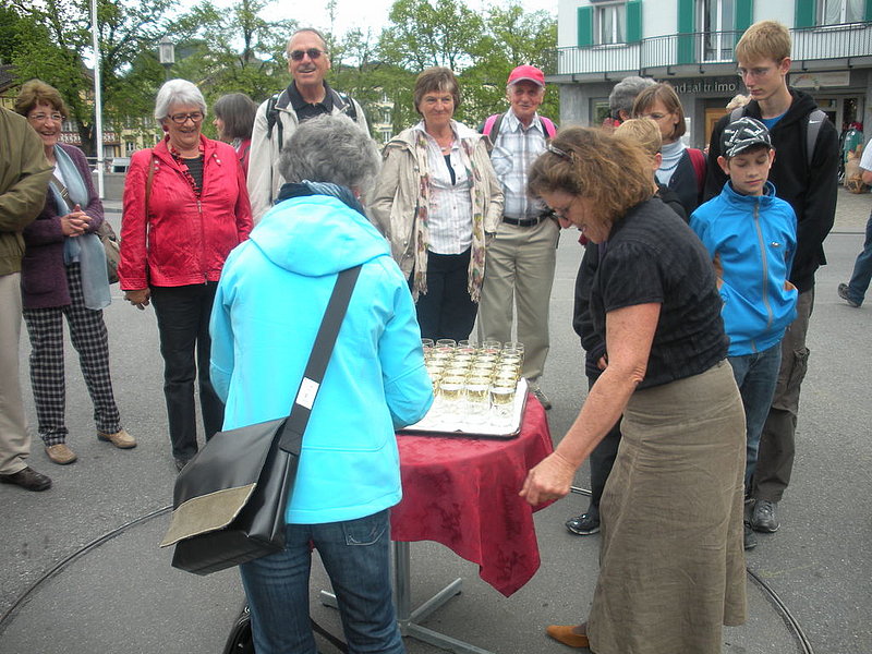 Abbiamo percorso in qua e in là e su e giù questo territorio (così minuto da volerci più tempo su e giù che in qua e in là) con una prima sosta nella "capitale" Appenzello. Qui due carine e gentili guide ci hanno accolto sulla strada principale con un generoso aperitivo e ci hanno quindi mostrato dettagliatamente la cittadina che conta poco più di 5'000 abitanti. A intervalli regolari si fermavano davanti a diversi negozi dove abbiamo potuto degustare tipici prodotti locali quali formaggi, salsicce, costolette affumicate, pasticceria e, allorché la sete era all'apice, le diverse qualità della loro ottima birra. Per poi finire in una drogheria dove ci fu data da provare la loro conosciuta grappa alle erbe.