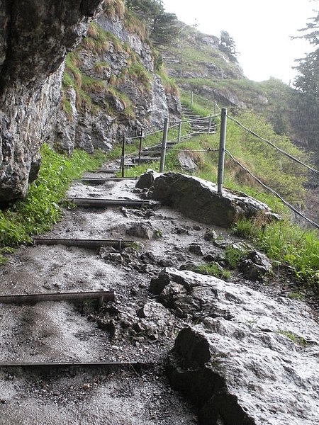 Nel pomeriggio abbiamo fatto sosta a Sammelplatz, situato tra Appenzello e Gais. Il nome deriva dal luogo dove gli appenzellesi si riunirono il 17 giugno 1405 per affrontare allo Stoss (al confine col Canton San Gallo) l'esercito degli Asburgo. Si dice che, essendo gli uomini un po' pochini, le loro donne indossarono indumenti maschili e marciarono con loro armate di forche. Alla vista di tutti quei "soldati" più numerosi del previsto, il nemico preferì ritirarsi in buon ordine.