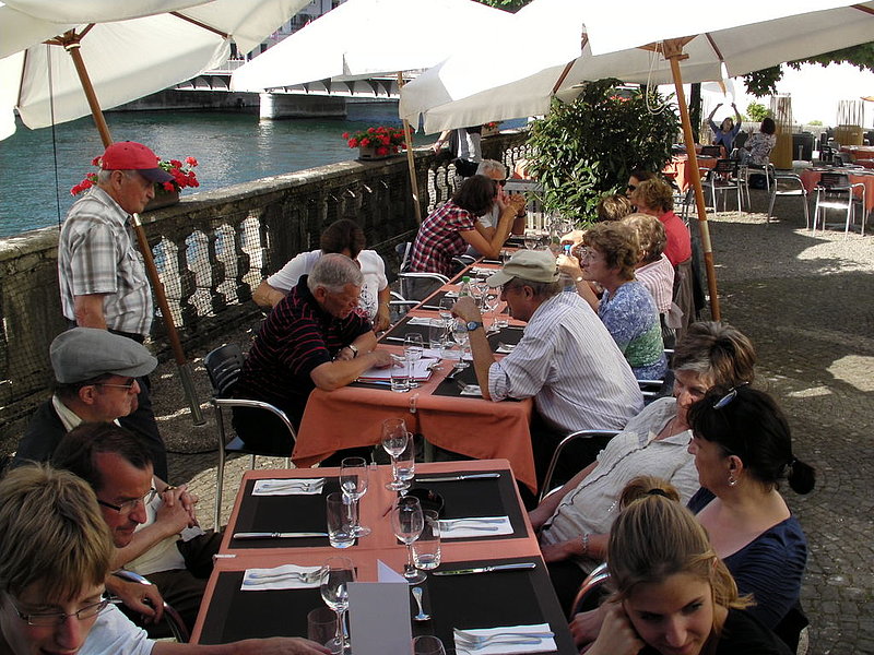 La cena sotto i platani in un ristorante sulla riva dell'Aar ha concluso degnamente quest'affascinante escursione.