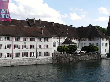 Ci siamo quindi spostati a Soletta. Dopo il gustoso pranzo sull'ariosa terrazza del "Krone" abbiamo visitato la città in modo tutto particolare. Una guida ha distribuito fogli con fotografie di monumenti, fontane e angoli caratteristici che noi, divisi in quattro gruppi, abbiamo dovuto cercare per poter rispondere alle domande abbinate. Abbiamo così trascorso due ore insolite alla scoperta della città vecchia, bellissima, senza auto, piena di vita e di gente, per poi finire nella birreria locale dove ci è stato dato modo di sciacquare generosamente le gole inaridite.