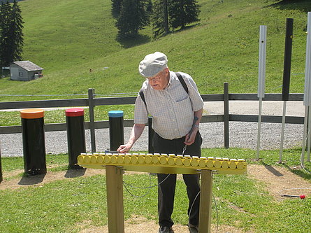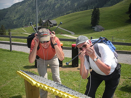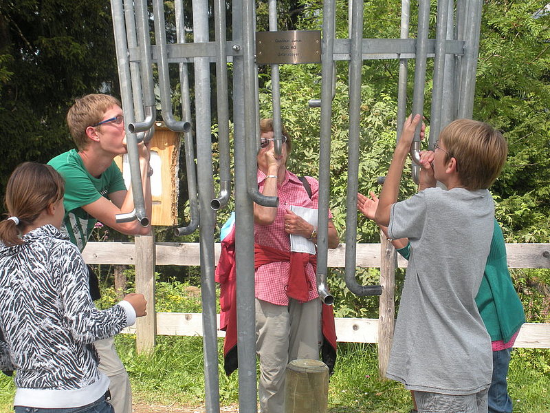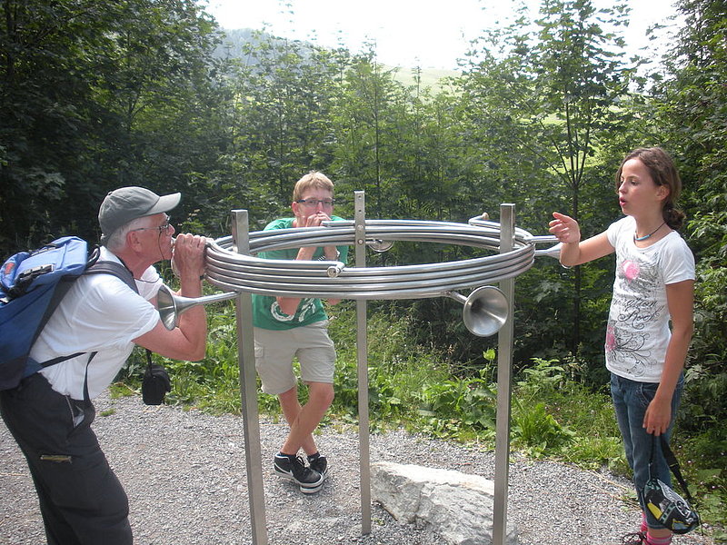 Con una gran voglia di aria salubre di montagna, sabato 9 luglio quindici partecipanti tra gli undici e ottantasei anni hanno intrapreso l’avventura lungo il «Klangweg» nel Toggenburgo. La partecipazione di Marilena e Bruno della sezione di Horgen con le loro due nipotine ci ha fatto particolarmente piacere. "Avventura" per modo di dire poiché il «sentiero dei suoni» è per lo più pianeggiante e accessibile praticamente a tutti e le diverse stazioni riproducenti suoni di ogni tipo (dal metallo al legno, dai sassi ai campanacci, dal flipper sonoro al tambureggiare del picchio e così via) danno non solo modo di divertirsi ma permettono anche momenti si benvenuta sosta. Abbiamo così potuto scoprire un angolo della Svizzera un po’ discosto dalle nostre latitudini ma non per questo meno accogliente e affascinante.