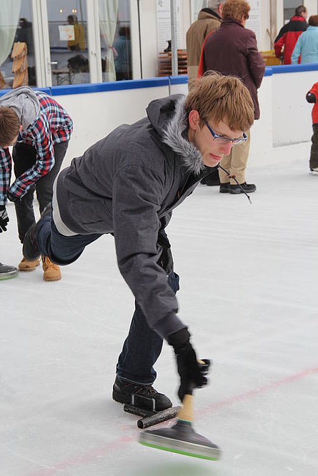 Nell'ambito dell'iniziativa presa per favorire e incoraggiare la partecipazione di (rimasti) giovani ai nostri eventi, domenica 3 marzo ci siamo recati in quel di Einsiedeln per trascorrere un paio d'ore all'aperto sulla pista di ghiaccio per cimentarci con l'"Eisstockschiessen", una variante più leggera del classico curling.