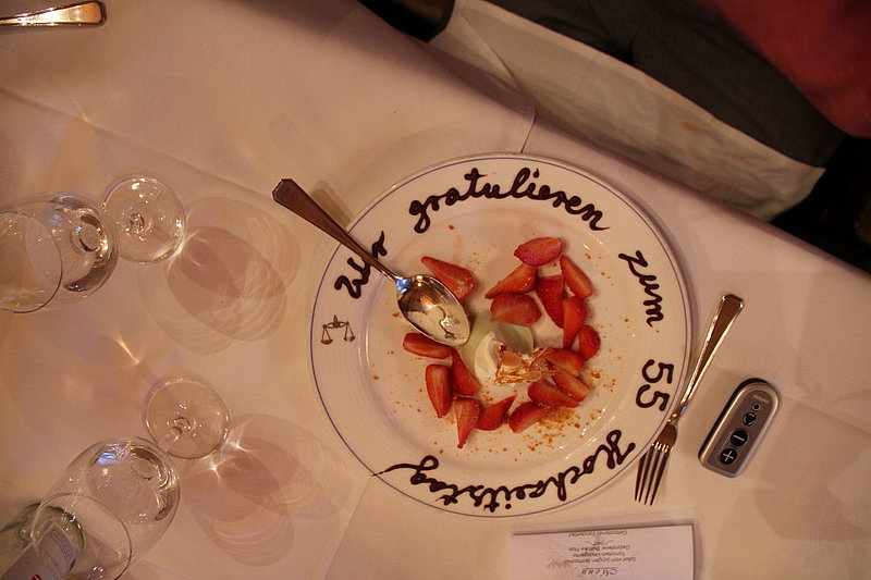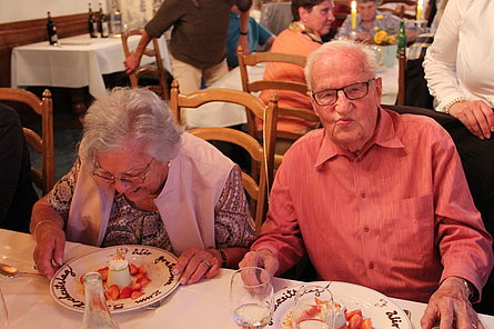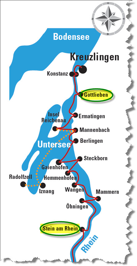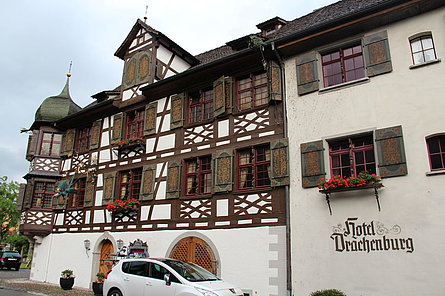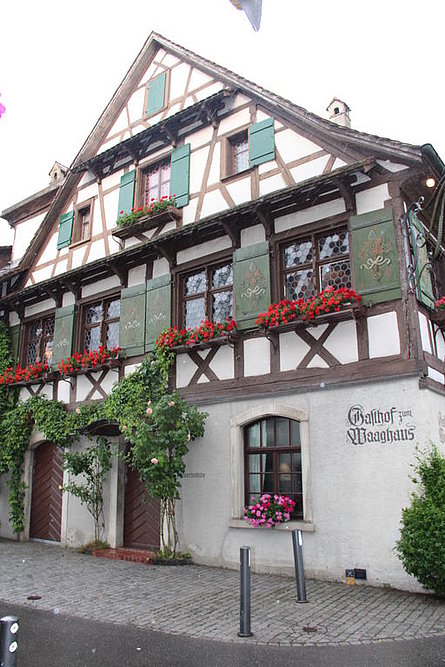 Ci siamo quindi avviati verso Gottlieben. Lì abbiamo preso le nostre camere e cenato nel più famoso albergo-ristorante della regione: il Drachenburg & Waaghaus. Non abbiamo mancato di sorprendere Ruedi e Margrit facendo mettere di nascosto una bottiglia di Champagne e un biglietto di auguri nella loro camera. Ruedi e Margrit festeggiarono esattamente 55 anni fa il loro matrimonio in quell’albergo.