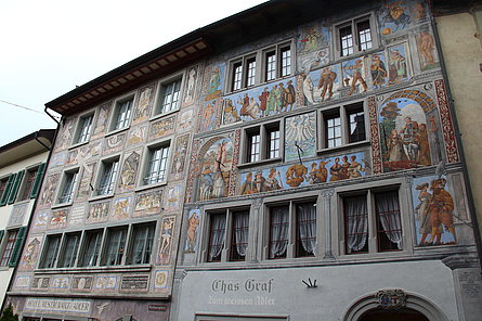 All’indomani ci siamo recati in treno a Stein am Rhein, dove due guide ci hanno svelato interessanti segreti storici e culturali di quella stupenda cittadina. Il pranzo l’abbiamo consumato sul battello che ci ha riportati a Gottlieben dove prima di risalire sui pullmini ci siamo ben riforniti dei famosi Gottlieber Hüppen. Sulla via del ritorno abbiamo inserito una breve sosta al castello napoleonico di Arenenberg e dato dall’alto un’ultima occhiata alla magnifica regione che ci ha ospitato. Il tempo non ci è stato troppo magnanimo, ma grazie al nostro indistruttibile buon umore abbiamo trascorso due indimenticabili giornate.