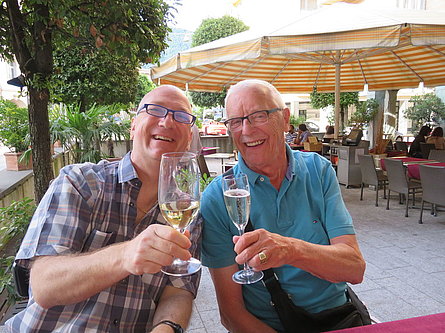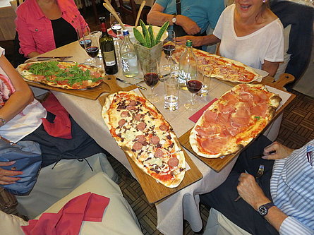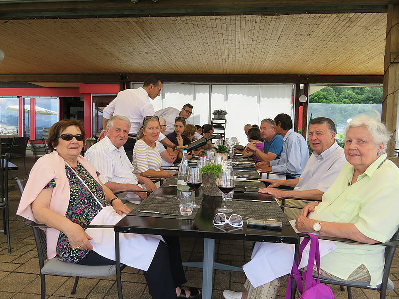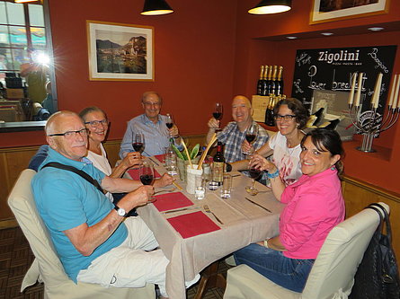 Domenica, dopo una suggestiva visita al Museo dei fossili a Meride, ci siamo recati al Serpiano dove abbiamo concluso queste due bellissime giornate favorite dal bel tempo con il pranzo di commiato in simpaticissima allegria e con vista mozzafiato sul lago sottostante. A pranzo terminato Charly si e dovuto sentir dire energicamente di ≪andare a fare il bagno≫. La persona coinvolta, non ticinese, intendeva però proporgli un buon bagno ristoratore nella piscina del complesso SPA del Serpiano e non quel ≪ma va a fa’l bagn≫ in uso da noi. Malinteso linguistico che, fra tante risate, si è naturalmente subito chiarito.