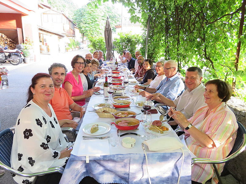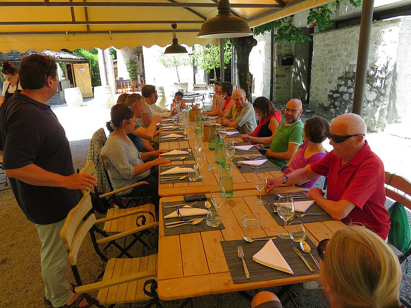 Dopo questa interessantissima visita ci siamo gustati un buon aperitivo e pranzo alla Casa del Vino situata all’inizio delle gole della Breggia, in prossimita del famoso mulino del Ghitello. Ospite d’onore era Uberto Valsangiacomo, ultimo ≪Spross≫ (in sesta generazione) della famosa casa vinicola del Mendrisiotto.