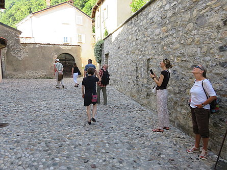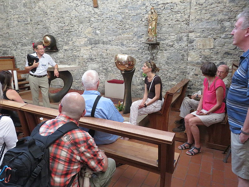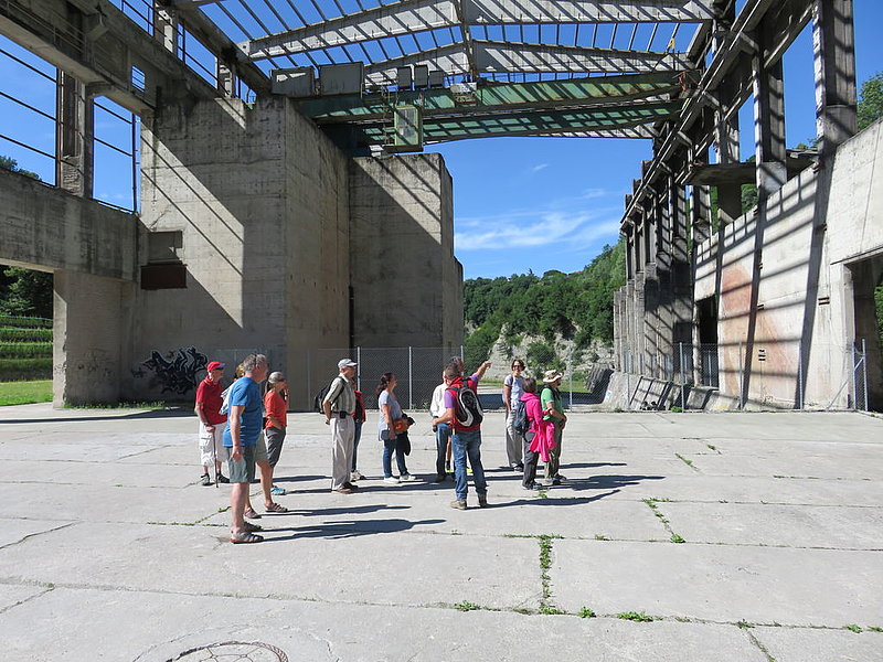 Tra coloro che si son spostati in treno gia venerdi pomeriggio e coloro che erano gia in Ticino acquartierati a casa loro o da parenti, una ventina di partecipanti si sono ritrovati di buon’ora sabato 10 giugno alla vecchia SACEBA a Morbio Inferiore per scoprire con due esperte guide il cosiddetto ≪percorso del cemento≫. Le guide ci hanno dapprima mostrato l’immensa quantita della maiolica asportata all’esterno e quindi, armati di casco e pile, condotti lungo le enormi gallerie scavate nel filone della maiolica stessa, roccia dura ideale per la produzione di cemento. Siamo rimasti a bocca aperta nel renderci conto in quali dimensioni si è prodotto quel cemento che per 40 anni è servito per la costruzione di case, autostrada e strade in tutto il Ticino. La produzione si è arrestata nel 2003 non perche il filone si era esaurito, ma allorquando le forti esplosioni cominciavano a causare grossi danni alle case di Castel San Pietro, situate 120 metri più in alto.