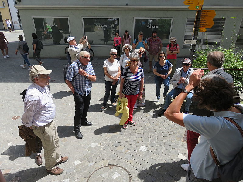 Dopo un ottimo pranzo al Ristorante Roter Turm nella città vecchia, la guida Fredy Hauser non solo ci ha mostrato i punti più interessanti della cittadina ma ci ha anche portato a conoscenza con molti dettagli - ma in modo molto gradevole - della sua avvincente storia, mostrandoci tra l’altro nel palazzo del Municipio la bellissima sala di legno intarsiato dove fino al 1848 si riunivano i delegati dei cantoni della vecchia Confederazione (Tagsatzung).