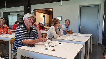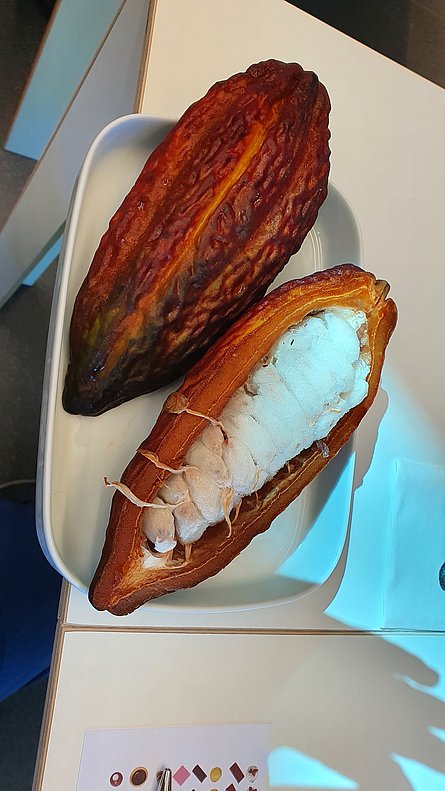 Baciati dalla fortuna grazie a un tempo semplicemente magnifico trenta partecipanti si sono presentati sabato 2 luglio a Ibach presso Brunnen per la visita alla fabbrica di cioccolato Felchlin e per la scampagnata all’Oberaxen sopra Flüelen. Un collaboratore della Felchlin ci ha fatto accomodare in una sala con tavolini da un posto che sembrava un’aula di esami scolastici. Ma su ogni tavolo erano messi in buon ordine esemplari di cioccolatini, cacao “vergine” e non so più cosa (cacao tostato?) che sarebbero poi serviti durante la presentazione.