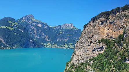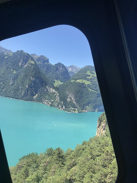 La piacevolissima compagnia è stata allietata da intermezzi con corno alpino da parte di Sibylle e Siro. Come detto, la giornata con cielo terso, ideale per una gita di questo genere, ci ha permesso di goderci un panorama senza pari sul ramo urano del Lago dei quattro cantoni e sulla piana che da Flüelen si addentra fino a Erstfeld.